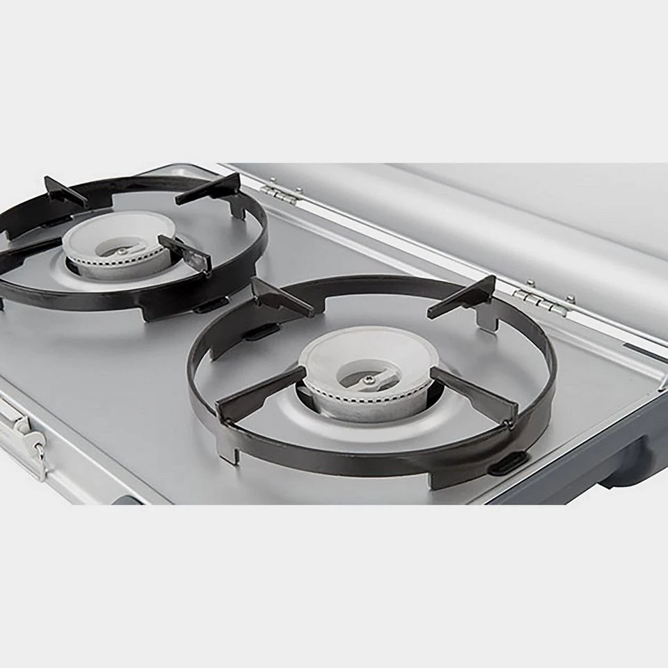 Lightweight, compact and easy to carry thanks to the heat resistant side panels, this double stove from Campingaz is a perfect companion on camping adventures. Helping you master your campsite culinary creations, the burners come with fully adjustable dials to give you full control over heat distribution.