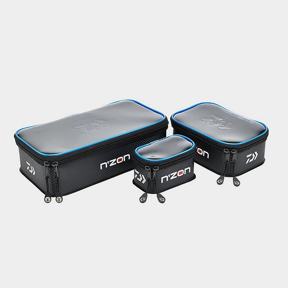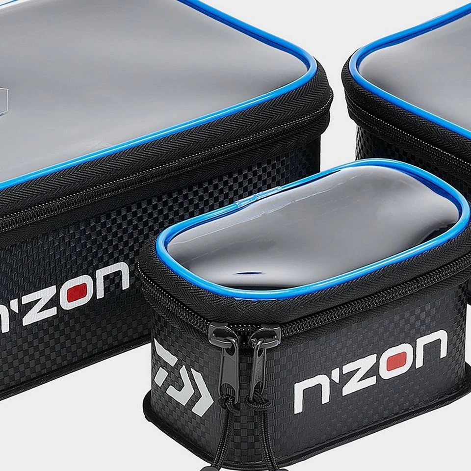 Three larger tubs, with zip round clear lids, that fit into one. Designed for tackle items, mixed bait or particles, either dry or in water. Reinforced rim.