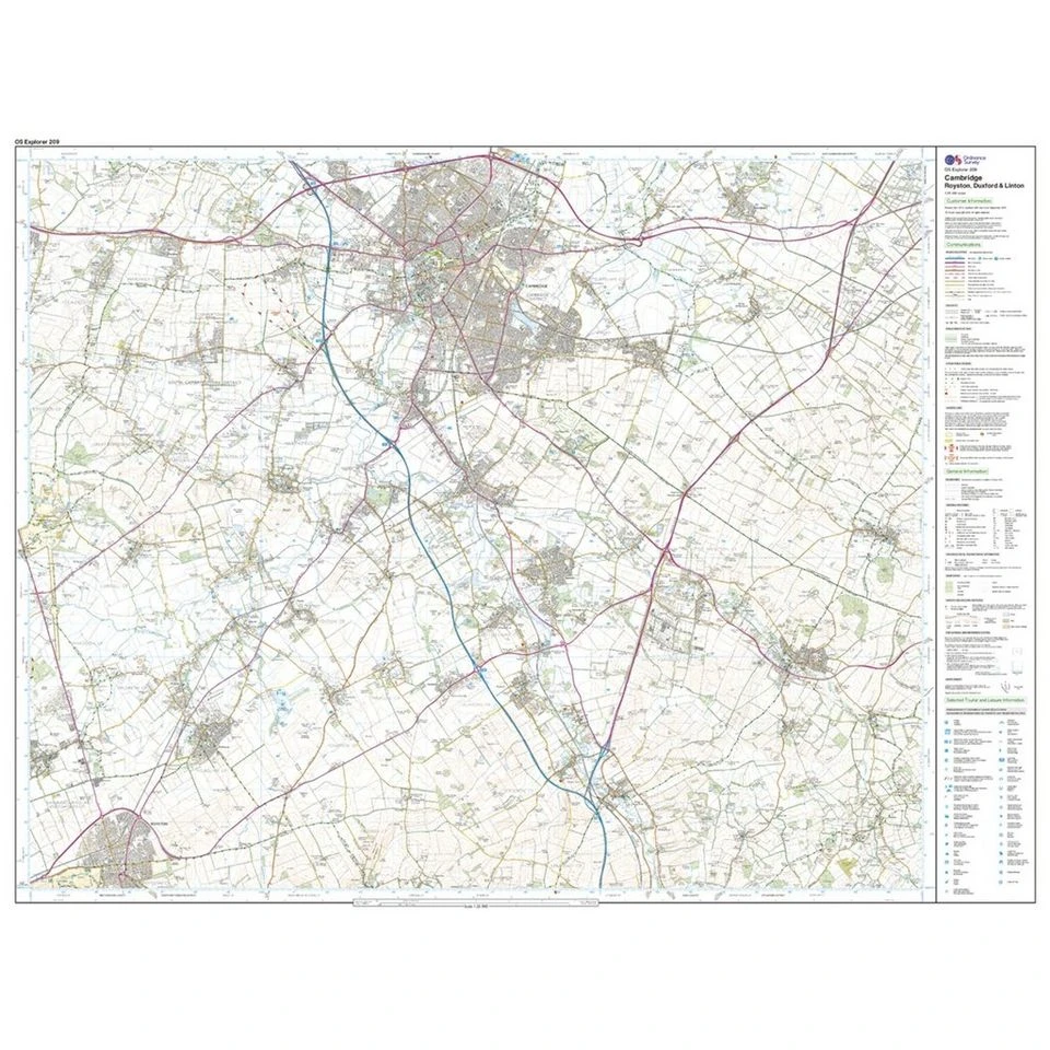 The essential map for outdoor activities in Cambridge, Royston, Duxford and Linton. The OS Explorer Map is the Ordnance Survey’s most detailed folding map and is recommended for anyone enjoying outdoor activities including walking, horse riding and off-road cycling. This map now comes with a digital version which you can download to your smartphone or tablet.