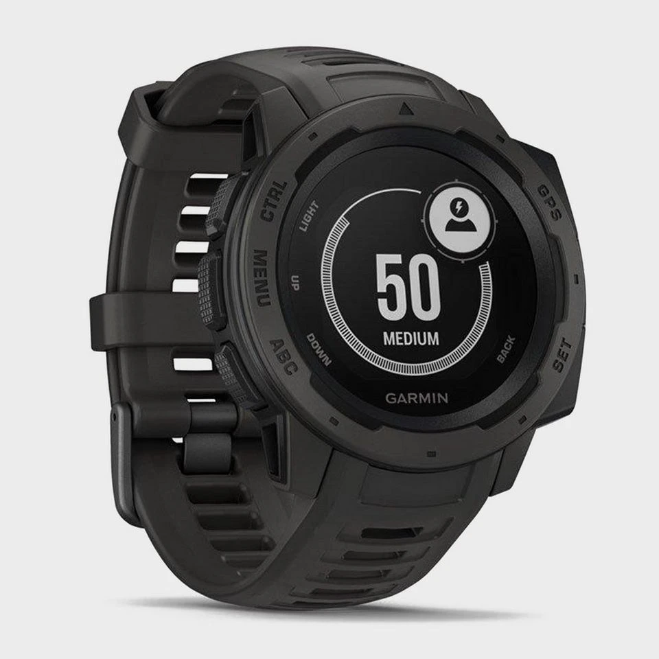 The Garmin Instinctâ„¢ is a military-grade rugged waterproof GPS watch and activity tracker, easily connectable to the Garmin Connectâ„¢ online fitness community.