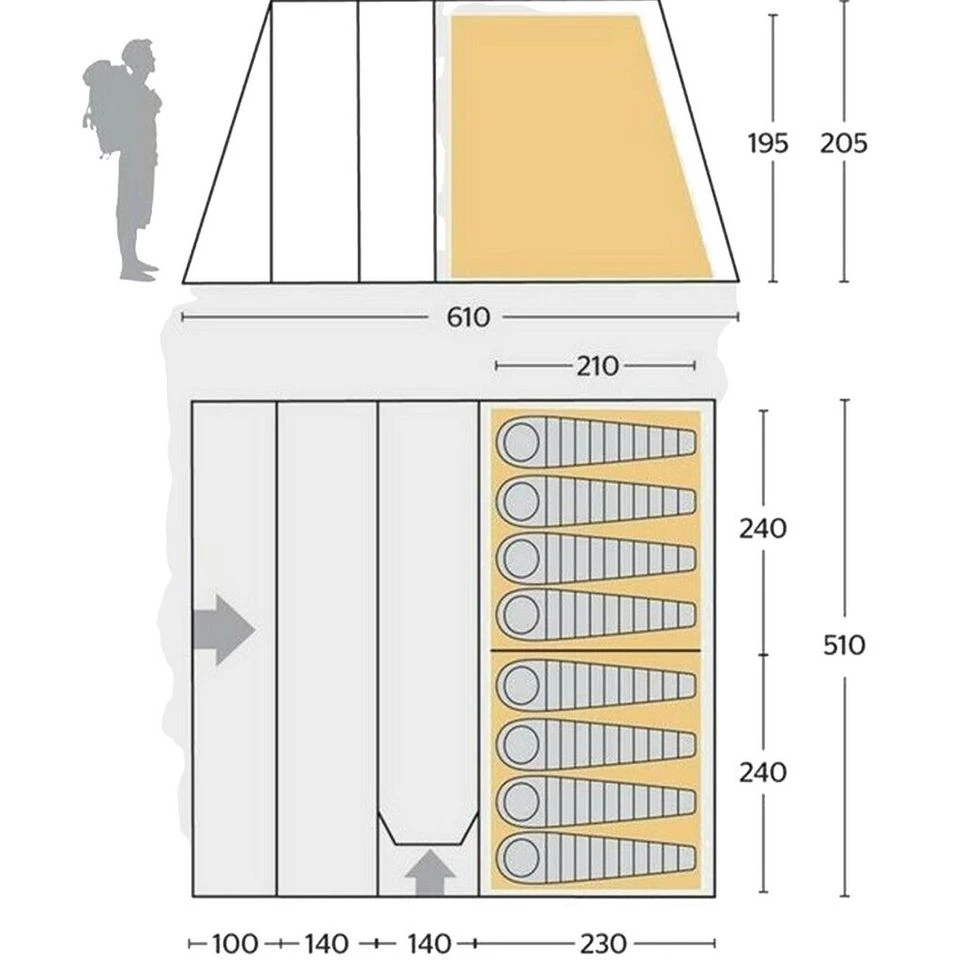 The Hi Gear Vanguard Nightfall 8 Premium is a sturdy steel-framed tunnel tent that boasts a spacious, airy living area and very comfortable bedrooms.